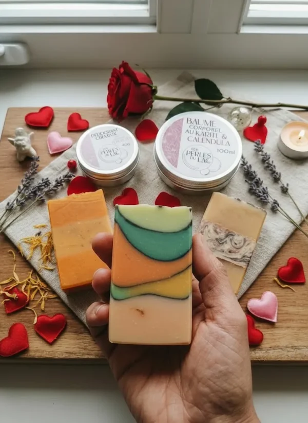 Nous savons qu’il est parfois difficile de trouver le cadeau parfait. C’est pourquoi Pascale a créé ce coffret exclusif qui regroupe les valeurs sûres de la savonnerie.